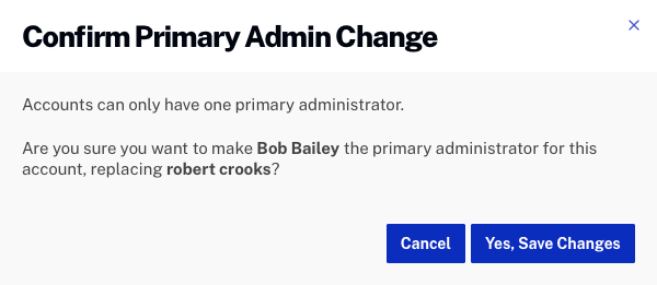Click on Make this user the primary administrator for this account.You will be prompted to confirm the primary user change.