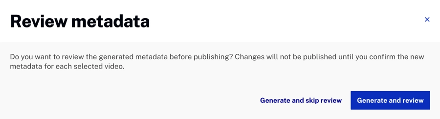 - (Optional) Select Review metadata before publishing if you want to approve suggestions first.