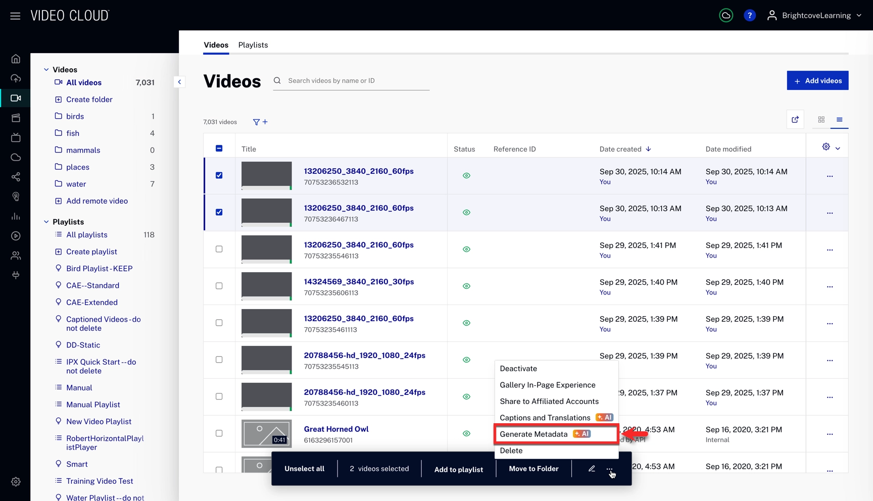 - In the Media module, select your videos.