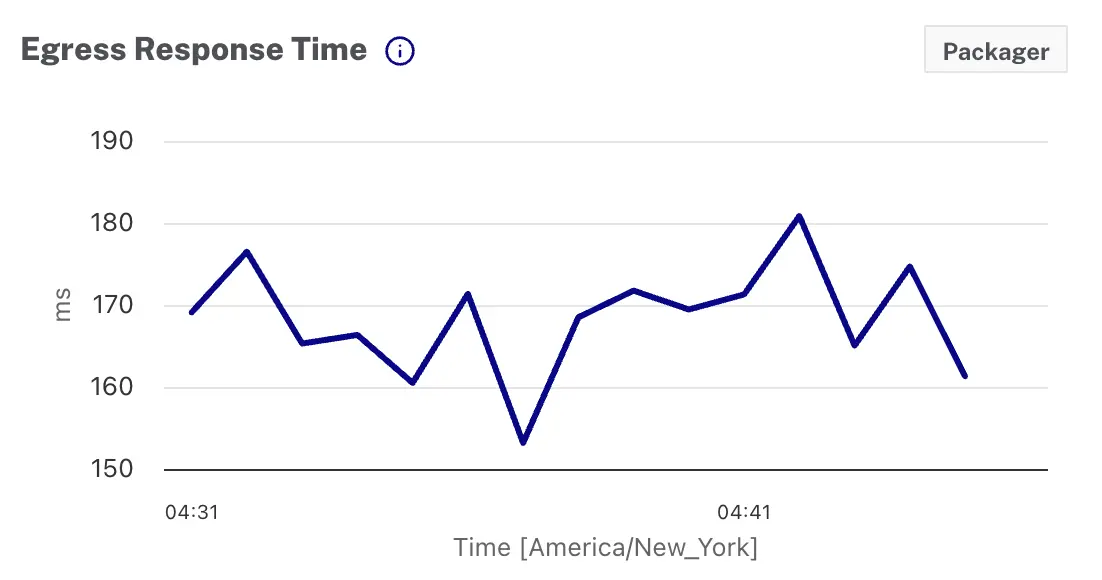 - Egress Response Time - Time that it takes the packager to process each output request.High egress response time may affect user experience, critical for OVP performance.