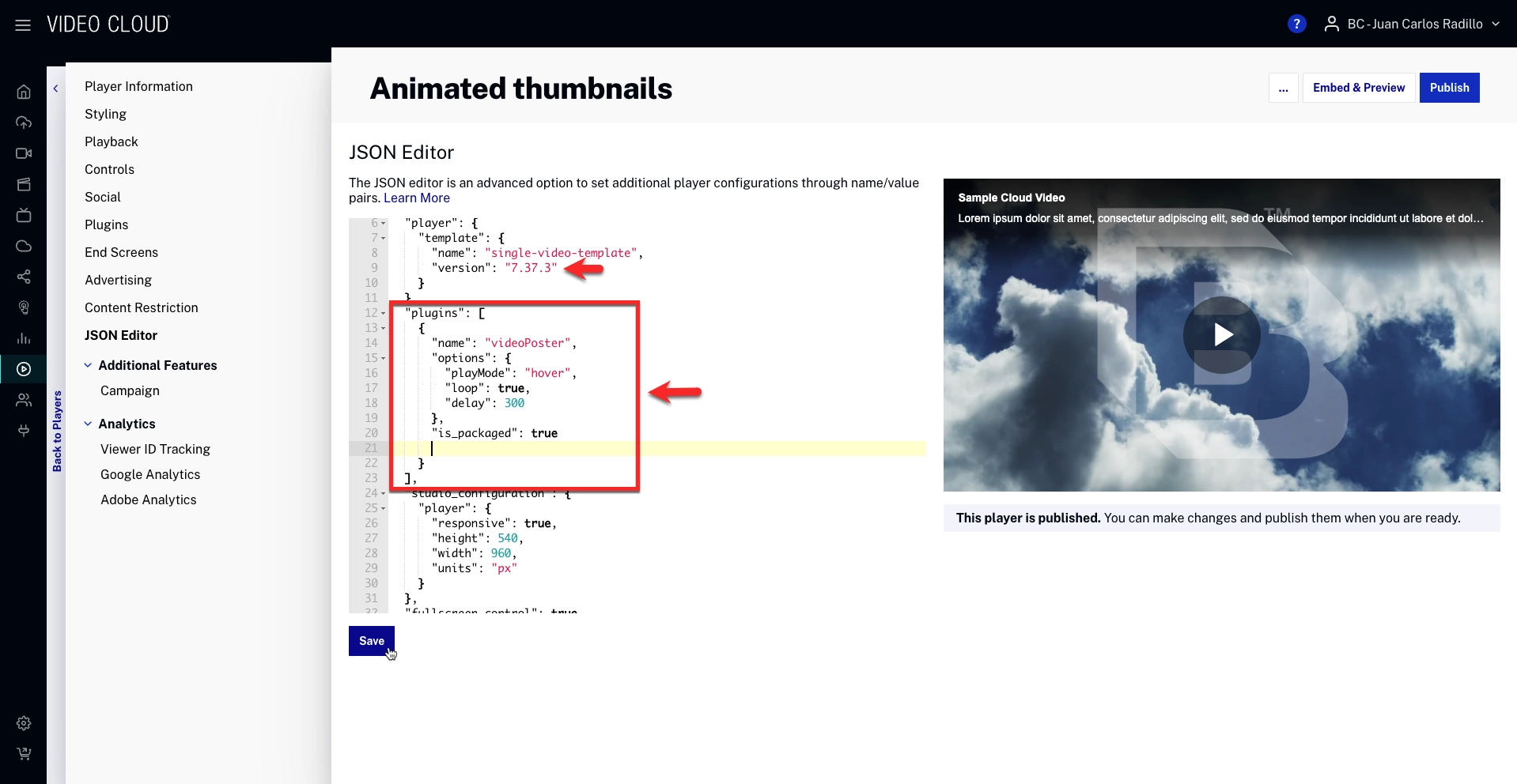 To use animated thumbnails with your Brightcove Player, follow these steps:
