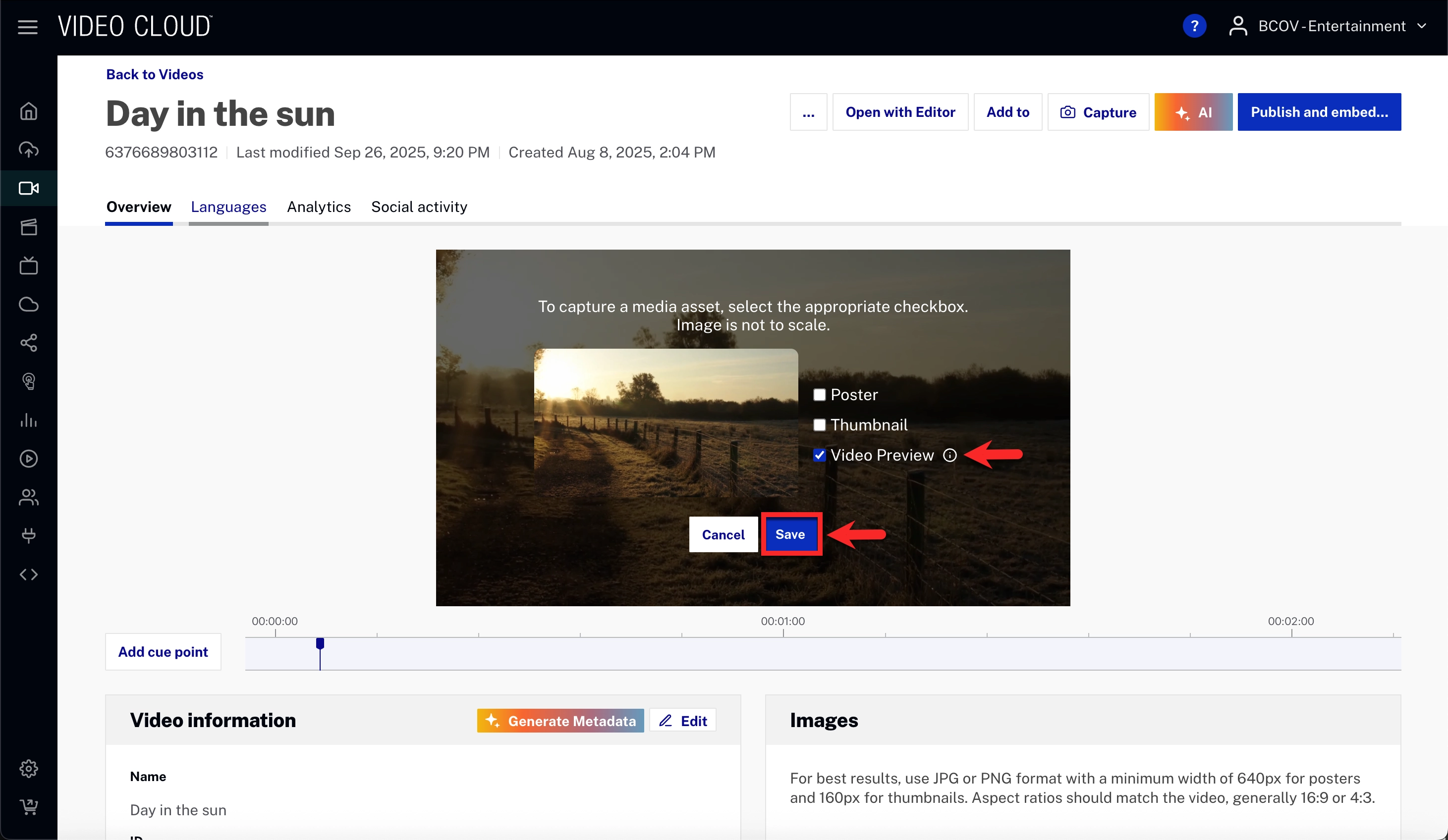- Open the Media Module and select your video.